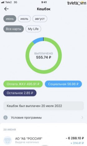 Как я кешбек за жкх получаю. Карта, которая творит чудеса. Оформить дебетовую карту УБРиР My life Однажды в интернете я увидела рекламу, верни 5% за ЖКХ и узнала о дебетовой карте My life от УБРиР. Сразу решила заказать себе и не прогадала. Это единственная дебетовая карта с кешбеком за ЖКХ. Анкету я заполнила на сайте и карту мне привез домой курьер, что очень удобно. Карта не именная, на платежной системе МИР. Опыт использования с мая 2022г. на момент описания отзыва 3 месяца. Кешбек получен в размере 550 рублей в месяц два раза . Итого 1100 рублей. Оформить дебетовую карту УБРиР My life Дальше я расскажу о положительных моментах и лайфхаках, дочитайте, пожалуйста, отзыв до конца, мне приятно,а Вам хорошие советы.Почему мне понравилась эта карта: 1. Бесплатное обслуживание навсегда и без каких-либо условий. Для меня это главное правило при выборе любой карты. 2. Кешбек 5% на ЖКХ, 1 % на любые покупки и 0,5% в супермаркетах, аптеках, АЗС. Выплачивается 20 числа следующего месяца рубля