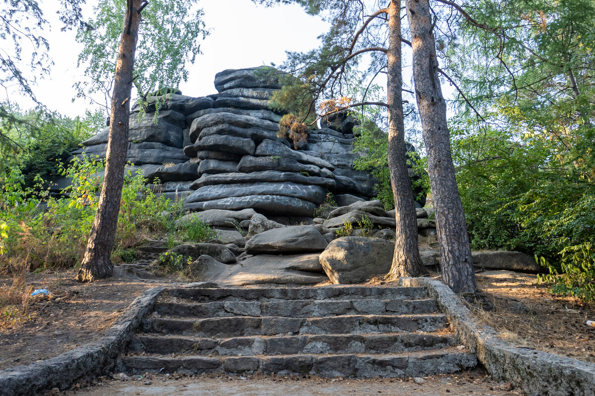 Локация 1: Камни у входа в парк. Современные археологи утверждают, что берега Шарташского озера были домом для 10 поселений. Кроме того, тут располагались стоянки древнего человека (самые ранние из них фиксируют 3 веком до н. э.). Гряда огромных валунов из гранита считалась их жертвенным местом, локацией сбора. Сегодня это место называют Шарташские Каменные палатки. Локация 2: Памятник Радио Памятник радио представляет собой раскрашенную бетонную триангуляционую
