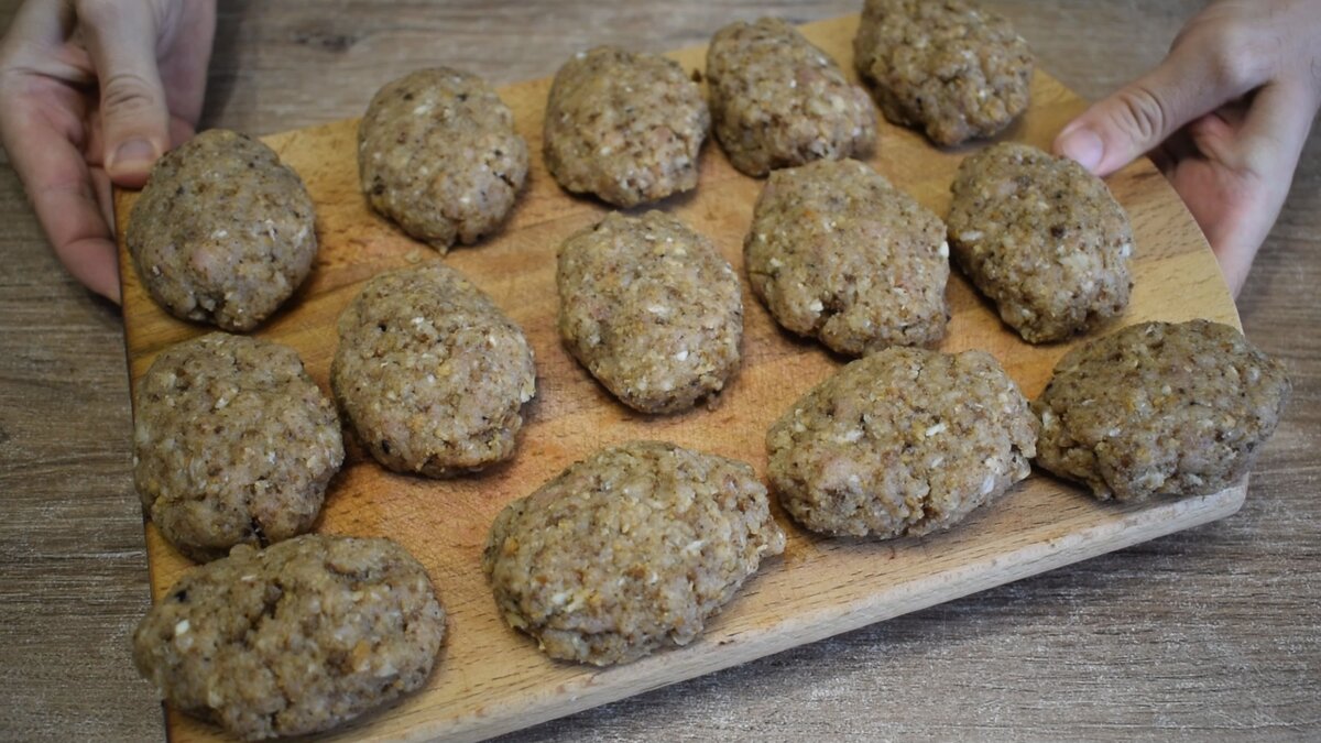 Ингредиенты: Сухари панировочные – 1 стакан Вода – 1 стакан (250 миллилитров) Фарш – 500 грамм Лук – 1 штука Чеснок – 2 зубчика Соль – 1 ч.л. Перец черный молотый Яйцо – 1 штука Масло растительное Масло сливочное – 30 грамм Гречка – 1 стакан Стакан объёмом 250 мл. Рецепт приготовления: В миске перемешиваем фарш, сухари замоченные в воде, измельченные лук и чеснок, одно яйцо, соль и черный перец. Смоченными в воде руками лепим котлеты. Жарим котлеты на растительном масле, по 2 минуты с каждой стороны, на среднем огне. На сухой сковороде, на медленном огне обжарить промытую гречку в течении 3-х минут. Залить гречку водой 500 мл и тушить на медленном огне 5 минут под крышкой. Потом кладем котлеты на гречку и снова 15 минут под крышкой. Такие котлетки подаем со свежими овощами. Приятного аппетита! Кстати, я уже делился этим рецептом на своём канале. в формате видео. Переходите и смотрите. Так же рекомендую посмотреть: Гора котлет за копейки, хватит на неделю, только гарниры меняй. Сочные и