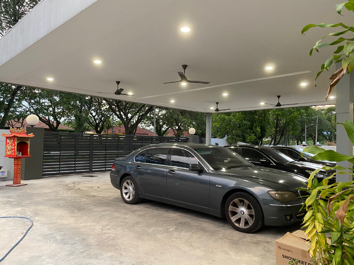 Двор большого дома встречает нас тремя машинами. У каждого члена семьи по машине. И мы еще приехали на БМВ, и его сестра сейчас живёт в Купла-Лумпуре и пользуется собственным авто там. Сразу бросаются в глаза серьезные решетки на доме. Китаец говорит, что это для успокоения души. И нападения на дома в Малайзии, по его словам, случаются часто, поэтому обеспеченные жители обязательно ставят решетки и камеры слежения.