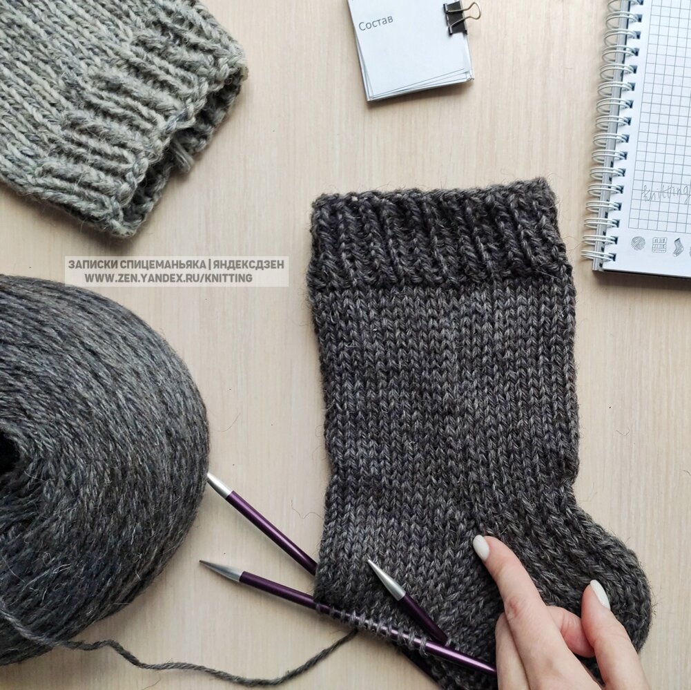 Особенно актуально для гладкой пряжи, высоковатого подъема\склонности к отекам, использовании в пятке укрепляющего узора со снятыми петлями (он худит и уменьшает в высоте ее).