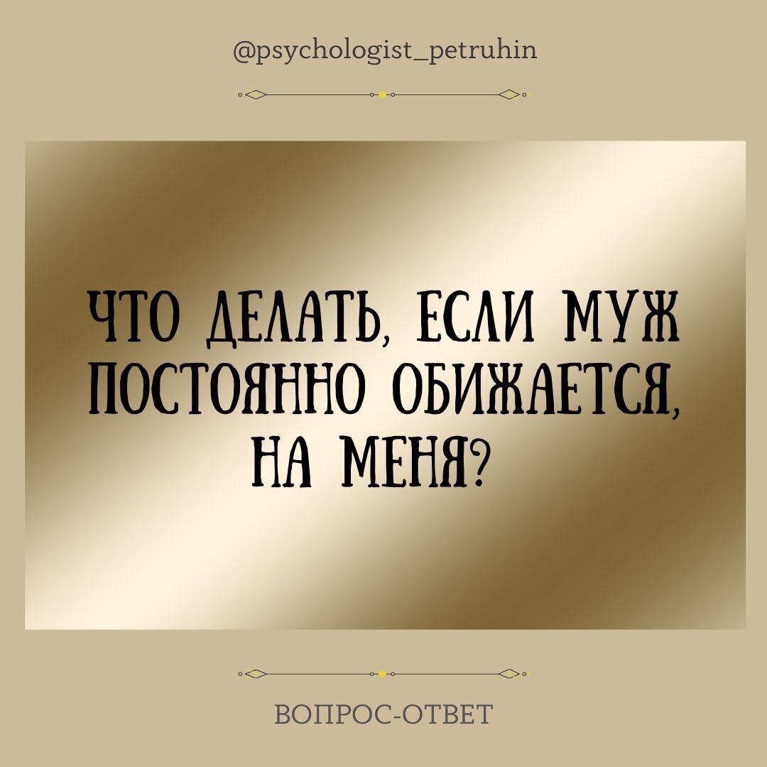 Вопрос: «Что делать, если муж постоянно обижается на меня, молчит, дуется и ждёт, чтобы я просила прощения? И пока я сама не подойду к нему, он так и не начинает со мной общаться. Как прекратить это детский сад?».