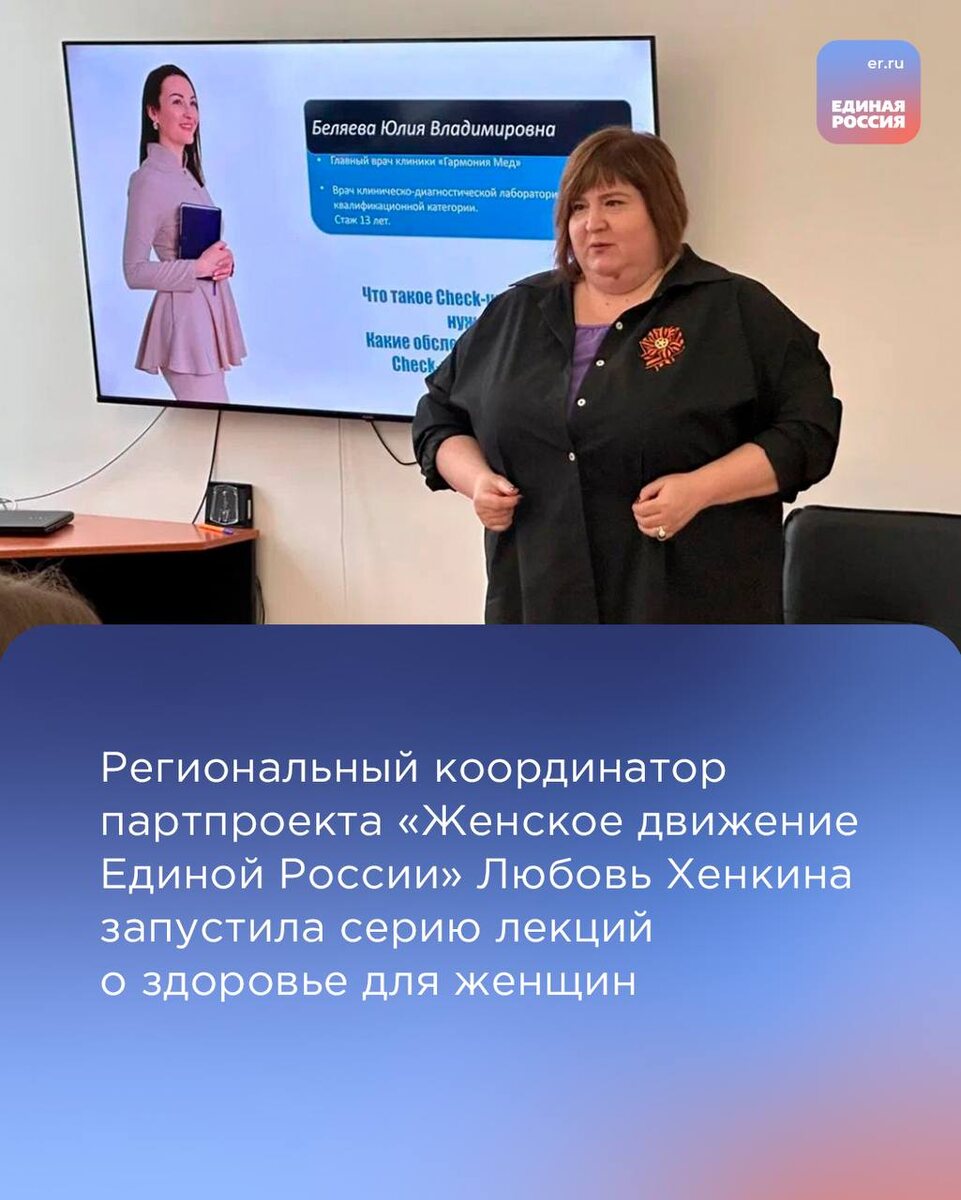 Лекции о женском здоровье и путях его сохранения проходят в очном и онлайн-форматах на базе Штаба общественной поддержки Ставропольского края. На базе Штаба уже прошли лекции на темы: «Что такое Check-up и зачем он нужен? Какие обследования входят в Check-up для женщин» (спикер – главный врач клиники «Гармония Мед» Юлия Беляева), «Что нужно знать о заболеваниях желудочно-кишечного тракта? Мифы и правда о нашем желудке, в которые мы верим» (спикер – врач гастроэнтеролог клиники «Гармония Мед» Жанна Даниелян), «Проктология: что вы хотели знать, но стеснялись спросить?» (спикер – заведующий хирургической службой клиники «Гармония Мед» Даниил Деревянко) и «Главный анализ в женском здоровье» (спикер – акушер-гинеколог, врач УЗИ-диагностики клиники «Гармония Мед» Евгения Топалова). Лекции будут проходить на базе Штаба не реже одного раза в квартал. Анонсы будут размещены на официальной странице Штаба общественной поддержки в ВКонтакте: https://vk.com/shtab.er_26