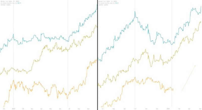 Когда растёт M2 — вначале золото, потом биткойн Инвесторы, хочу показать вам одну важную картину. На графике: • Голубая линия — M2 (денежная масса в США) • Жёлтая — золото • Оранжевая — биткойн И это буквально отражение того, как устроен современный мир капитала. Сначала растёт M2. Это значит — деньги печатаются, система насыщается ликвидностью, ставки идут вниз, дефицит финансируется. И тогда начинается переток. • Первым реагирует золото. Потому что золото — это хранилище ценности, которому доверяют даже те, кто не верит ни в крипту, ни в акции. Это страховка. Это старый знакомый. • А вот биткойн отстаёт. Он дольше набирает ликвидность, дольше убеждает. Но как только страх начинает утихать — именно биткойн становится главным бенефициаром растущей денежной массы. Это то, что мы видим прямо сейчас. • M2 снова растёт • Золото — уже близко к вершине • А биткойн ещё не выстрелил по-настоящему Что это значит? Вы находитесь в очень тонкой точке цикла. Если раньше биткойн рос на х