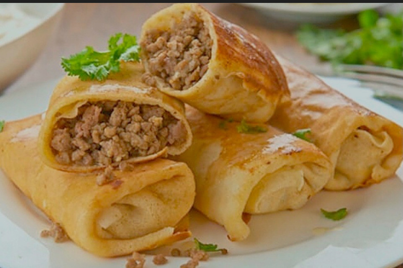 Подавай блины с мясом со сметаной, зеленью или любимым соусом. Горячие – самые вкусные!