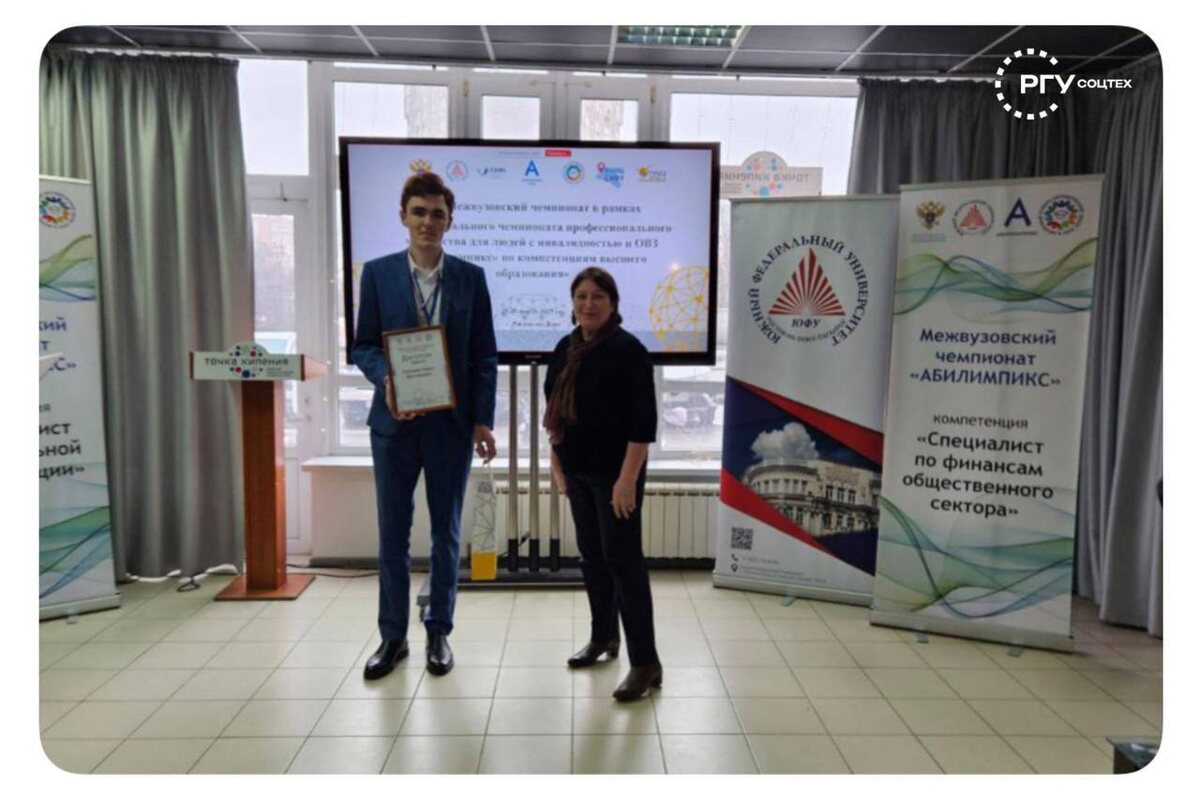 Студент Соцтеха занял призовое место на межвузовском чемпионате «Абилимпикс» 🏆 25-26 марта в Ростове-на-Дону в Точке Кипения Южного федерального университета прошел межрегиональный этап чемпионата «Абилимпикс». Студенты продемонстрировали свои навыки по компетенциям «специалист по социальной реабилитации» и «специалист по финансам общественного сектора». 🥇 Павел Лебедев, студент ФЭ, под руководством Руслана Хакимова, занял 2 место. Заместитель Министра науки и высшего образования РФ Ольга Петрова отметила: «Абилимпикс — состязание, в котором очень тесно вовлечены и участвуют наши партнеры — работодатели, которые сразу же смотрят на участников и включают вас в кадровый резерв на свои предприятия». Победителям и призерам предстоит участие в очном этапе Национального чемпионата «Абилимпикс», который пройдет в октябре 2025 года в Москве. Желаем Павлу удачи в следующем этапе! @rgusocteh #студент_соцтеха
