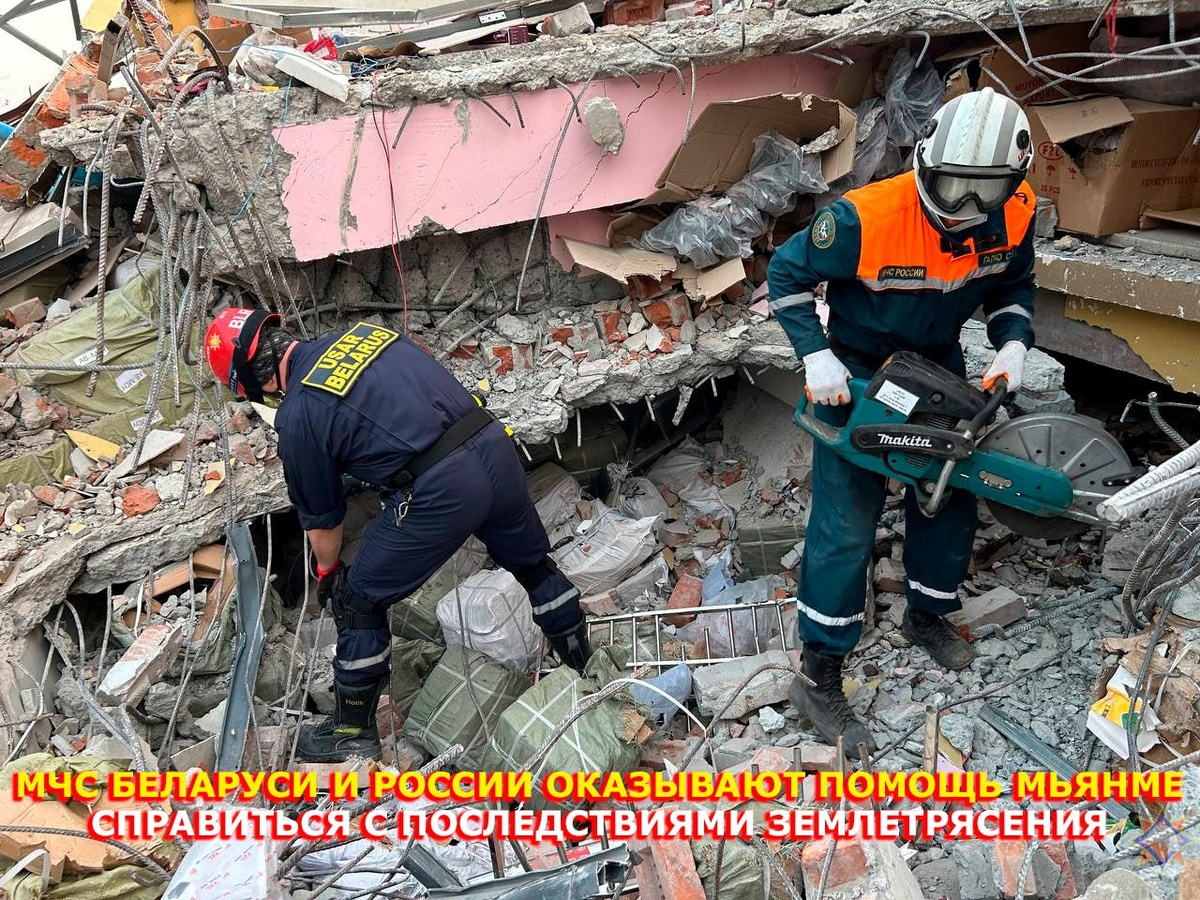 🟢Мьянма открыта для международной помощи, и сейчас в стране работают спасатели из Беларуси и России, которые помогают в разборе завалов и поиске выживших.