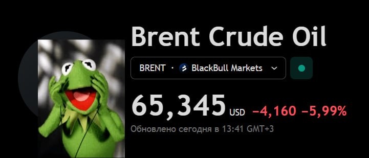 ⚡️ После решения Китая нефть ускорила полёт вниз! Марка Brent ниже $65,5, Urals торгуется за $59 впервые с июля 2023 года