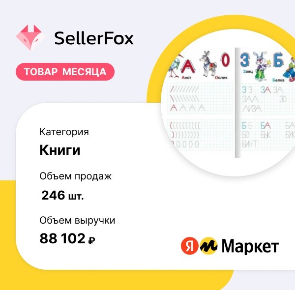 Первые буквы. Пропись "Пишем буквы и читаем" от автора Татьяны Горбачевой стала лидером по количеству продаж в категории "Книги" на Яндекс.Маркете. За последние 30 дней товар приобрели более 240 раз на общую сумму около 90 тысяч рублей. Всего в книжной категории на Маркете в марте приобрели более 925 тысяч товаров. Общая выручка селлеров за последний месяц превысила 1,3 млрд рублей. Чаще всего на Маркете покупали детские книги, нехудожественную литературу, а также учебники.