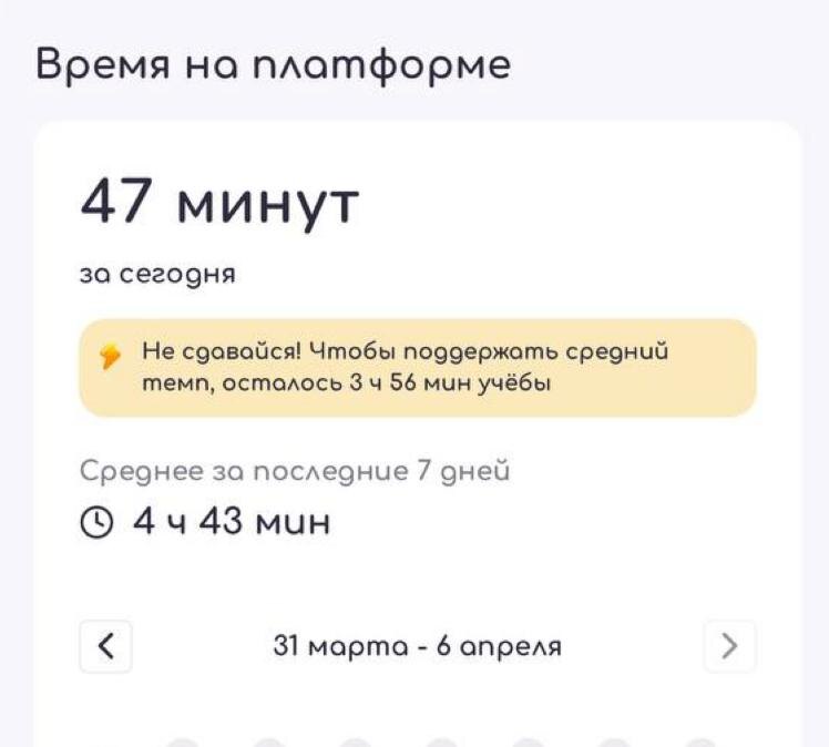 Стикер на платформе подскажет, сколько еще времени нужно прозаниматься, чтоб поддержать средний темп 🌹