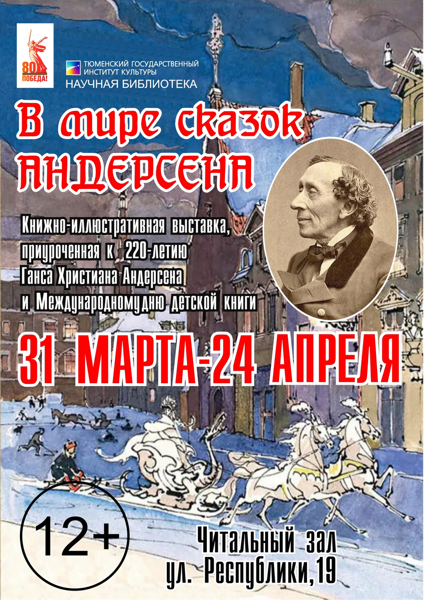 📢В читальном зале научной библиотеки института культуры открылась (Республики, 19, ауд. 109) книжно-иллюстративная выставка «В мире сказок Андерсена», приуроченная к 220-летию великого датского сказочника Х. К. Андерсена. 👨🎓Ханс Кристиан Андерсен – один из самых знаменитых сказочников в мире. День его рождения – 2 апреля празднуется как Международный день детской книги. День детской книги был учреждён в 1967 году Международным советом по детской книге по инициативе немецкой писательницы Йеллы Лепман. Неотъемлемая часть праздника — вручение Международной премии Х.К. Андерсена. Награда присуждается автору лучшей детской книги, а с 1966 года — и художнику-иллюстратору. 👨🎓📚Ханс Кристиан написал множество сказок и историй. Он не только непревзойденный сказочник, но и поэт, романист, мемуарист, очеркист и художник. 📚В первом разделе экспозиции представлены уникальные биографические и литературоведческие работы. Среди них: «Борис Ерхов. Андерсен» (ЖЗЛ); «Бо Гренбек. Ханс Кристиан Анд