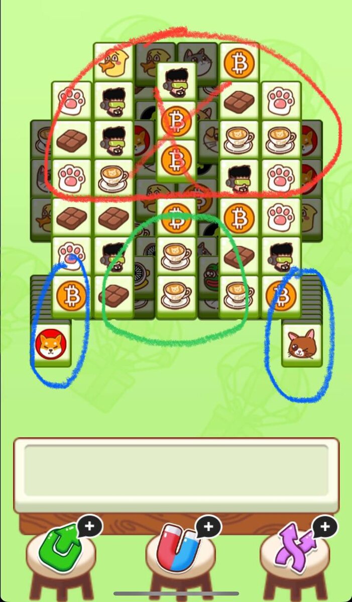 1) Наша главная цель сегодня - это красная зона по центру. Разбираем ее с краев в центр - примерно 14 триплетов, далее подключаем Синие зоны.
