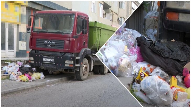 Заброшенный грузовик превратился в мусорную свалку посреди улицы в Баку