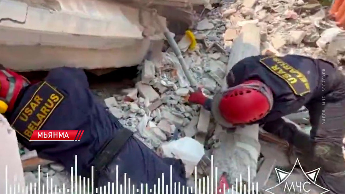 Белорусские спасатели, кинологи и медики продолжают работать в пострадавшей от мощного землетрясения Мьянме, сообщили в программе Новости «24 часа» на СТВ. Работы ведутся круглосуточно в сложных условиях: под угрозой афтершоков и дальнейшего обрушения поврежденных и неустойчивых конструкций зданий. Добавляет трудностей температура воздуха, которая превышает отметку в 30 градусов. Для обнаружения людей под завалами специалисты МЧС используют широкий спектр оборудования. В арсенале отряда: радар-детектор, видеоэндоскоп, тепловизор, а также прибор контроля положения нестабильных конструкций. С помощью таких инструментов спасатели обследуют завалы, выявляют пустоты в них, где могут находиться люди, осуществляют поиск пострадавших. Одновременно работают кинологические расчеты: четвероногие спасатели обучены обнаруживать людей даже под массивными обломками зданий. Напомним, 28 марта в Юго-Восточной Азии произошло землетрясение магнитудой 7,7. В результате погибли более 3 тысяч человек, еще о