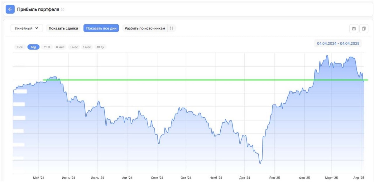 🧐 На фоне последней коррекции - прибыль портфеля (суммарные начисления + переоценка тела) вернулись на значения годичной давности
