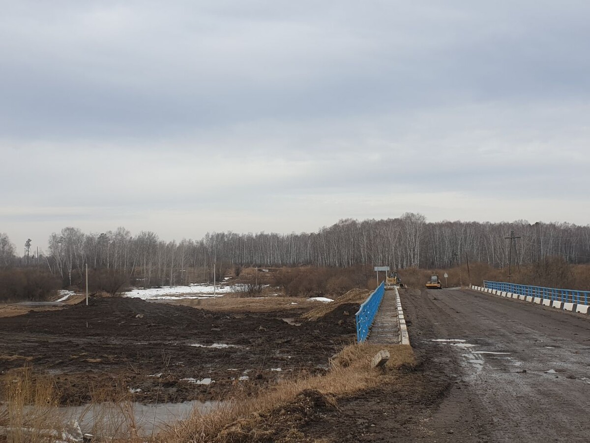 Близ Кекура уже неделю ведутся работы - здесь насыпают объездную дорогу для строительства временного моста через Бузим