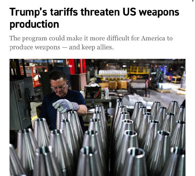Оружие американского производства может подорожать из-за импортных пошлин Трампа, пишет Politico. По данным газеты, это связано с вероятными перебоями в глобальных цепях поставок. Кроме того, подход Вашингтона «сделаем сами» заставит его союзников искать других производителей вооружений. Это может подорвать американскую отрасль, которая обеспечивает оружием большую часть мира, уточняет издание. 🟩 Подписаться | Прислать новость | Читать аналитику