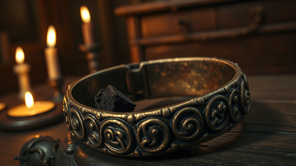 Лера нажала на скрытый механизм. Браслет раскрылся, как створки, и внутри оказался... кусочек древесной коры, тёмной, почти чёрной, с едва заметными прожилками.