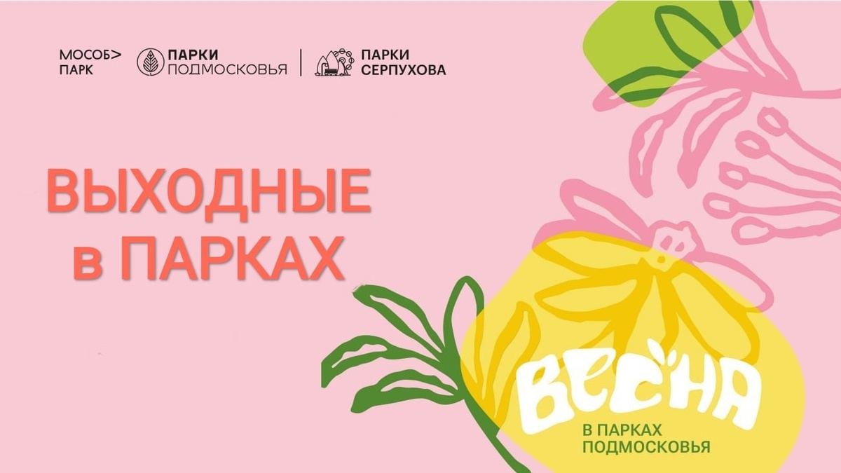 ✨ Выходные в парках ВЕСНОЙ 4 АПРЕЛЯ /ПЯТНИЦА/ 🌳 ПАРК ЖЕМЧУЖИНА 15:00-15:50 Игровая программа, зарядка для детей и интеллектуальная викторина 🌳ПАРК ПРИНАРСКИЙ 17:00-17:20 Игровая программа и викторина 5 АПРЕЛЯ /СУББОТА/ 🌳ПАРК ПРИНАРСКИЙ 16:00-16:30 Веселая эстафета 🌳ПАРК КОМСОМОЛЬСКИЙ 15:00-15:50 Игровая программа, зарядка для детей и викторина 6 АПРЕЛЯ /ВОСКРЕСЕНЬЕ/ 🌳ПАРК ИМ. О. СТЕПАНОВА 10:30 Мастер-класс по историческим танцам в ДТ Центральный (12+) 🌳ПАРК ПРИНАРСКИЙ 16:00-16:50 Игровая программа, зарядка для детей 💰 Вход свободный❗️ ✅ Мероприятия Серпухов https://dzen.ru/id/66f01c6eb4c6fe60c9ca1608 http://vk.com/serpukhov_events http://dzen.ru/serpukhov_events