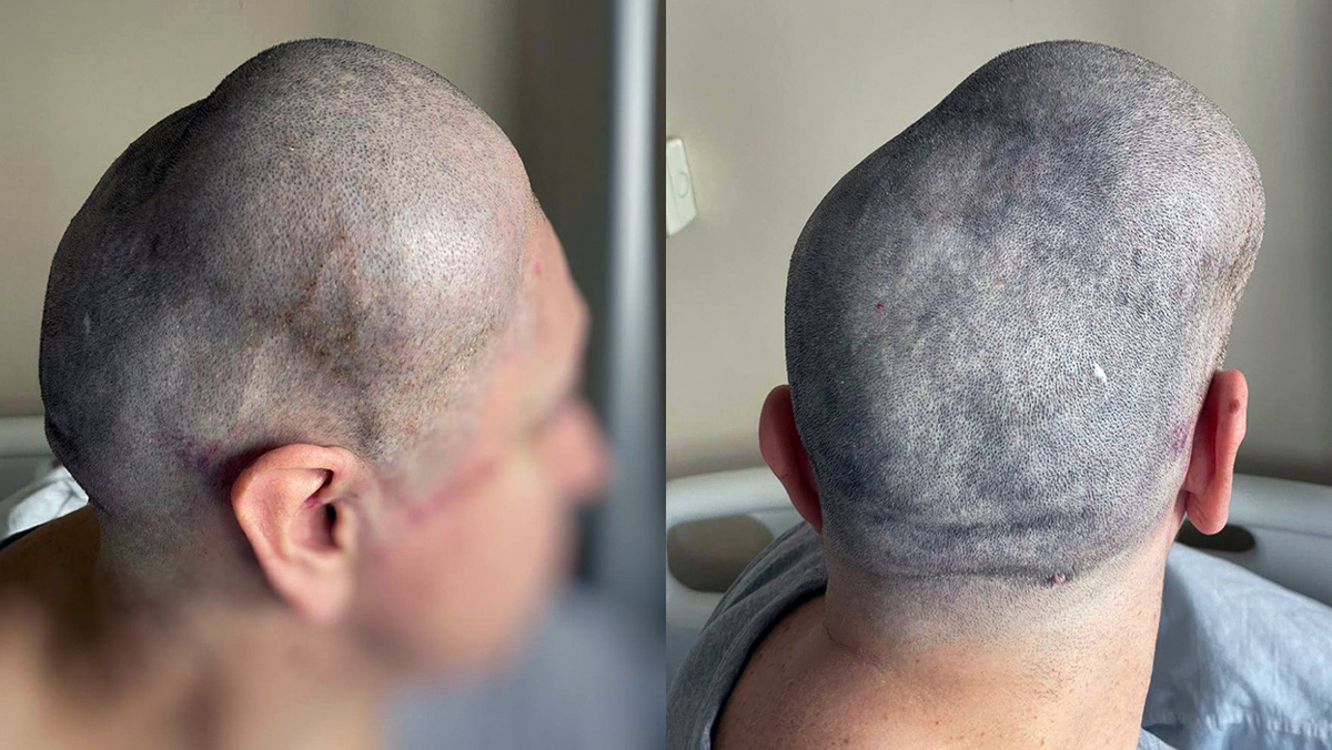 которая разрушила и деформировала теменную кость, поразив подкожную