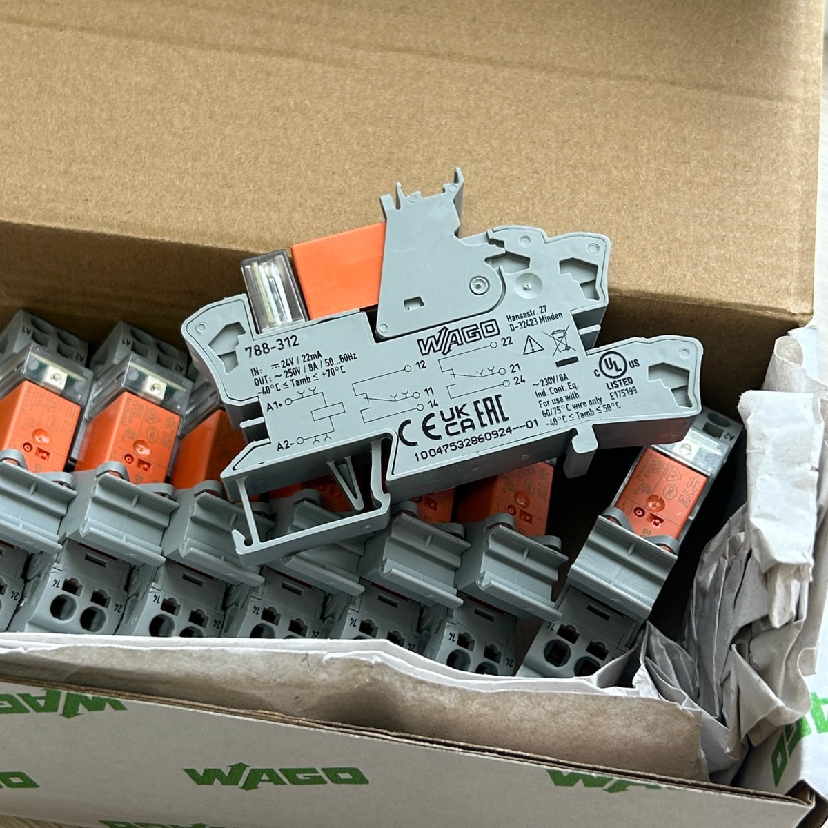 Очень распространённая и удачная модель реле WAGO 788-312. 2 перекидных контакта, управление 24 В пост. тока; коммутация 250 В перем.тока Похожие модели есть у многих производителей: Finder, Phoenix Contact, Schneider Electric, Schrack и пр. Но отметим, что у WAGO реле часто дешевле конкурентов, и следует принять во внимание очень удобную колодку ("кроватку") с пружинными зажимами, с возможностью перемыкания перемычками, с маркировкой стандартными бирками от клемм, и со сменным заменяемым индикатором. И вот ещё казалось бы мелочь, но, к примеру, у Schrack можно составить подобную релейную колодку, и даже с пружинными зажимами, но для этого нужно иметь четыре заказных номера (реле, колодка, индикатор, прижимная скоба), а потом всё это собрать на объекте. Что неудобно ни отделу закупки, ни монтажникам. У WAGO 788-312 всё готово в одном артикуле и гарантирует высокое качество и удобство при эксплуатации. Полные характеристики, графики и тех.описание в техническом листе и в каталогах на са