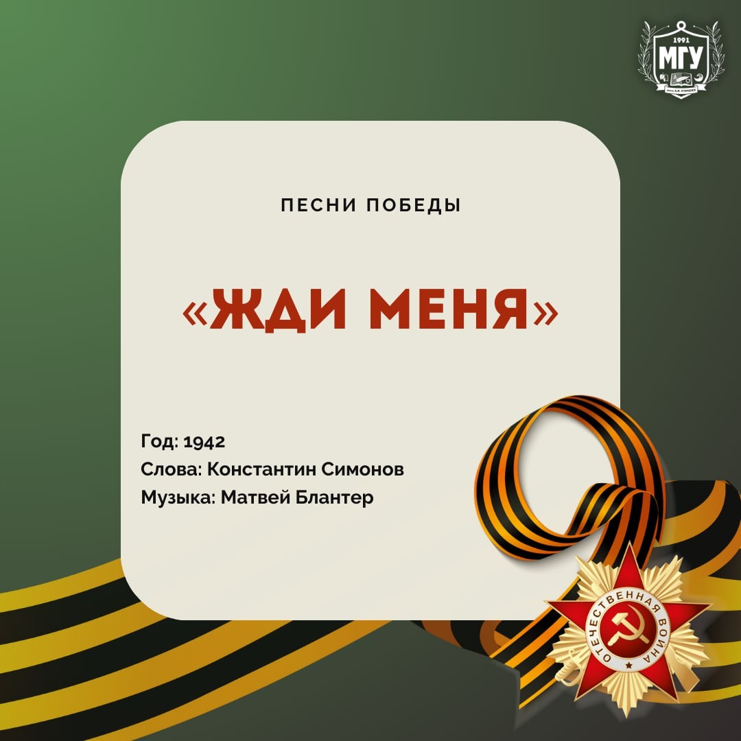 Год: 1942 Первый исполнитель: Вера Красовицкая Слова: Константин Симонов Музыка: Матвей Блантер «Жди меня, и я вернусь. Только очень жди…» — эти слова знают даже те, кто никогда не читал Симонова. Одно из самых проникновенных стихотворений о любви и верности стало настоящим гимном надежды в годы войны. Интересно, что Константин Симонов не планировал делать это произведение публичным. Он просто написал письмо в стихах своей возлюбленной — актрисе Валентине Серовой — перед тем, как отправиться на фронт. Но судьба распорядилась иначе: 9 декабря 1941 года он прочитал его в радиоэфире, и оно мгновенно разлетелось по всей стране. В 1942 году музыка Матвея Блантера превратила стихотворение в песню. Вера Красовицкая исполнила её в фильме «Парень из нашего города», и с этого момента «Жди меня» зазвучала не только в письмах, но и в сердцах миллионов. Письмо-стихотворение Симонова печатали в окопных газетах, переписывали от руки, учили наизусть. Солдаты носили его с собой, а в тылу его читали жен