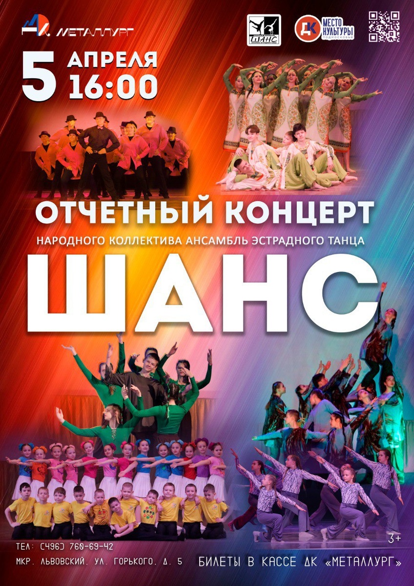 ✨ Отчетный концерт ансамбля эстрадного танца "Шанс" 👍Коллектив носит почетное звание «Народный» с 1996 года. Руководитель Романова Людмила. 💃В репертуаре насчитывается более 40 хореографических постановок в направлении эстрадный, народно-стилизованный танец, а в жанре современная хореография. 🏆Народный коллектив «Ансамбль эстрадного танца «Шанс» является лауреатом фестивалей и конкурсов. 🚫 Возраст: 3+ 📆 05.04.2025 🕒 16:00 🏢 Дом культуры «Металлург» 📍 г.о. Подольск, мкр-н Львовский, ул. Горького, д. 5 💰 Цена: 350 ₽ 🎫 Купить билет: https://clck.ru/3JSRU8 #webПодольск #концертПодольск ✅ Мероприятия Подольск https://dzen.ru/id/66ed500f7b5671493eca3fd6 http://vk.com/podolsk_events http://dzen.ru/podolsk_events