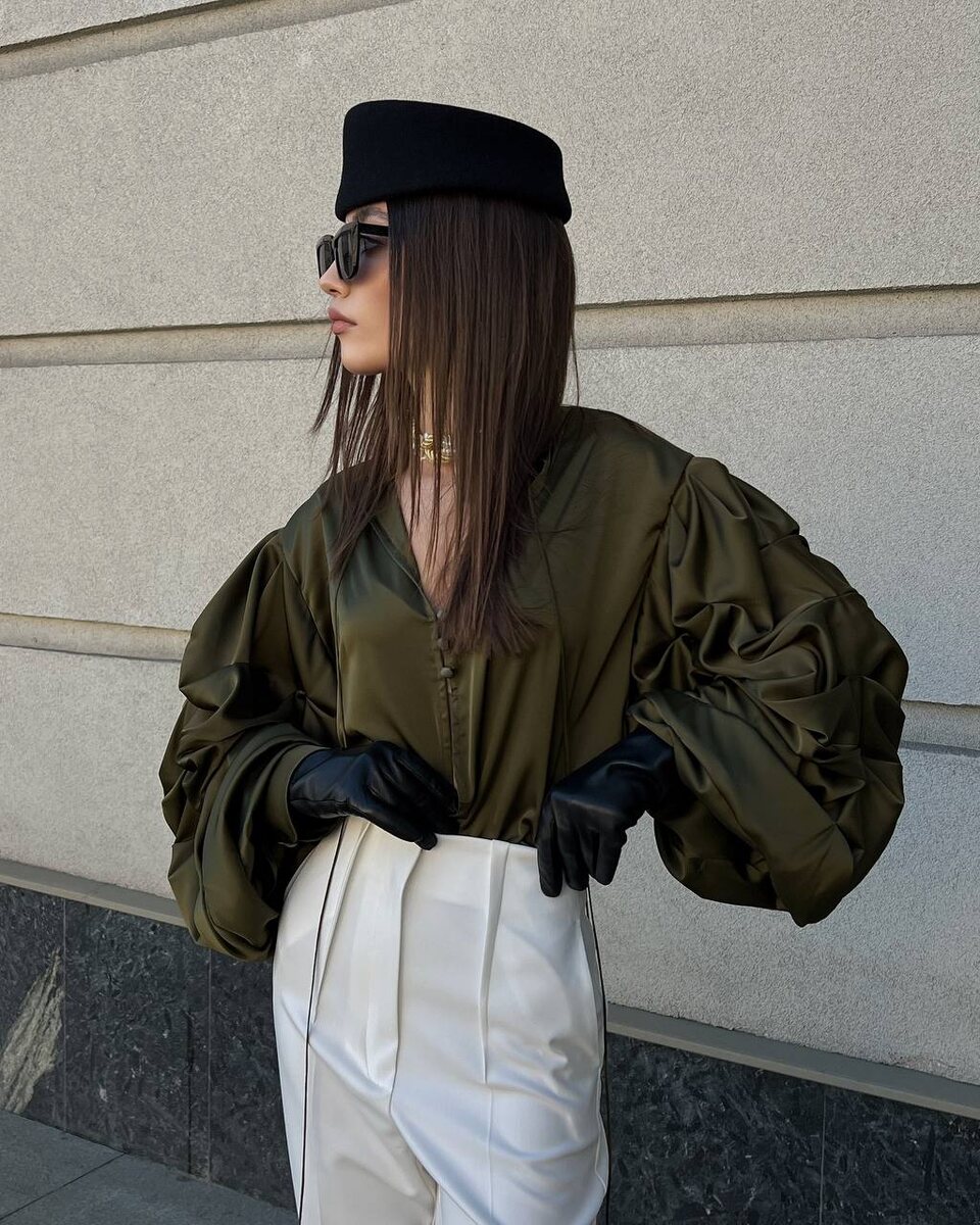 Роскошная блуза-облако в красивом оливковом оттенке🫒