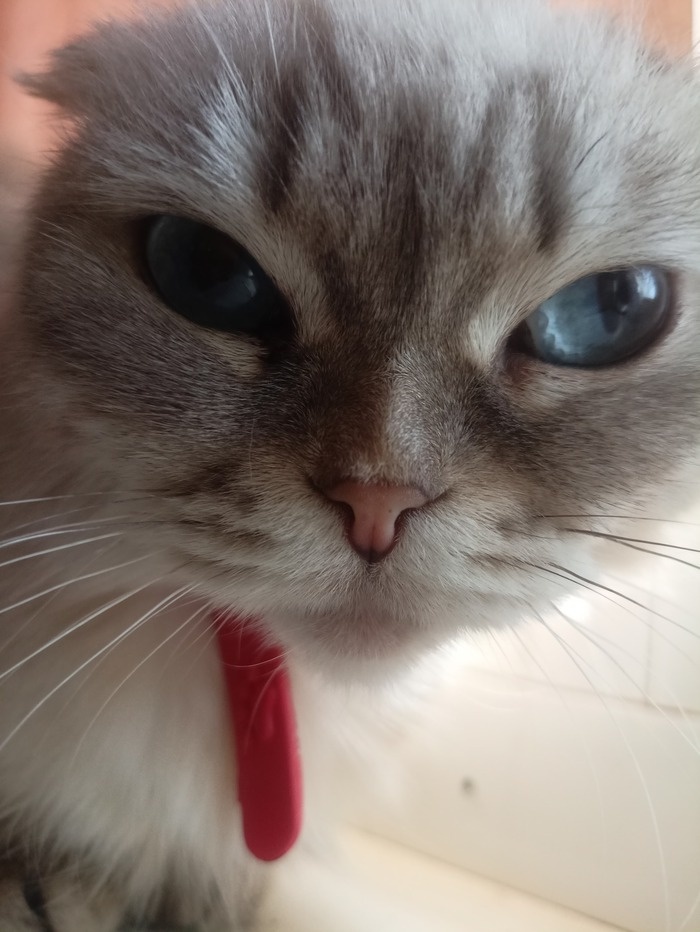 Первая из ныне живущих появилась Бусинка. В обиходе - Буся-бабуся - ворчливая, вредная, упрямая, якобы пугливая кошка (она делает вид что капец как всех боится, а по факту вы ей просто не нравитесь и она избегает вашего общества). Судя по всему это выбраковка шотландцев, хвостик коротенький, морда плоская, глаза огромные голубые. найдена была в крайнем истощении умирающей на улице, прогнозов никаких не давали, но живет уже лет пять наверное и презирает всех - кошек, собак, людей. Любит приходит в людно-кошачье место квартире садиться посреди комнаты и громко ворчать - за что и получила свое второе имя.