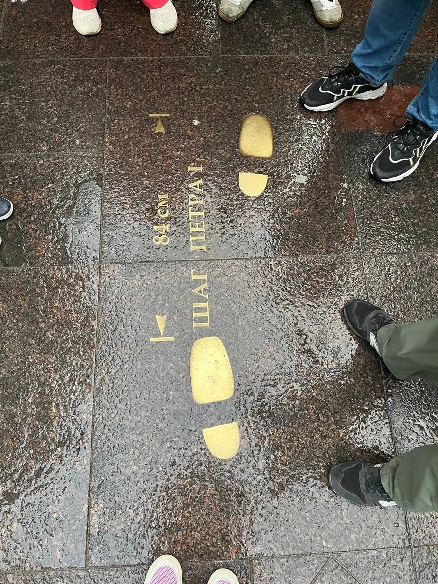 Новые памятники СПб, о которых вы могли не знать. На Петровской набережной реализовался проект «Путь Петра». Прогуливаясь по бульвару, вы увидите отлитые в бронзе следы Петра I. Длина его шага достигала 84 сантиметров. При этом ходил царь быстро, подгоняя свиту. Вспомните картину Серова, которая довольно точно передает походку самодержца. Длина каждой плиты здесь — 84 см, так что вы можете прошагать весь путь, возомнив себя императором. Группа скульптур в уютном сквере Товстоногова представляет собой наглядное пособие судьбы Петра и его реформистских устремлений. Скульптурная композиция «Зодчие — строители Петербурга», где автор Таратынов изобразил вместо архитектора Тома де Томона шотландского химика Томпсона. Еще вы можете сфотографироваться у ростометра, чтобы соизмерить ваши габариты с габаритами «мин херца». По меркам эпохи царь был огромен, его рост составлял 203 см. Он буквально стоял на голову выше своих современников. Ближе к «Авроре» обратите внимание на встроенный в мо