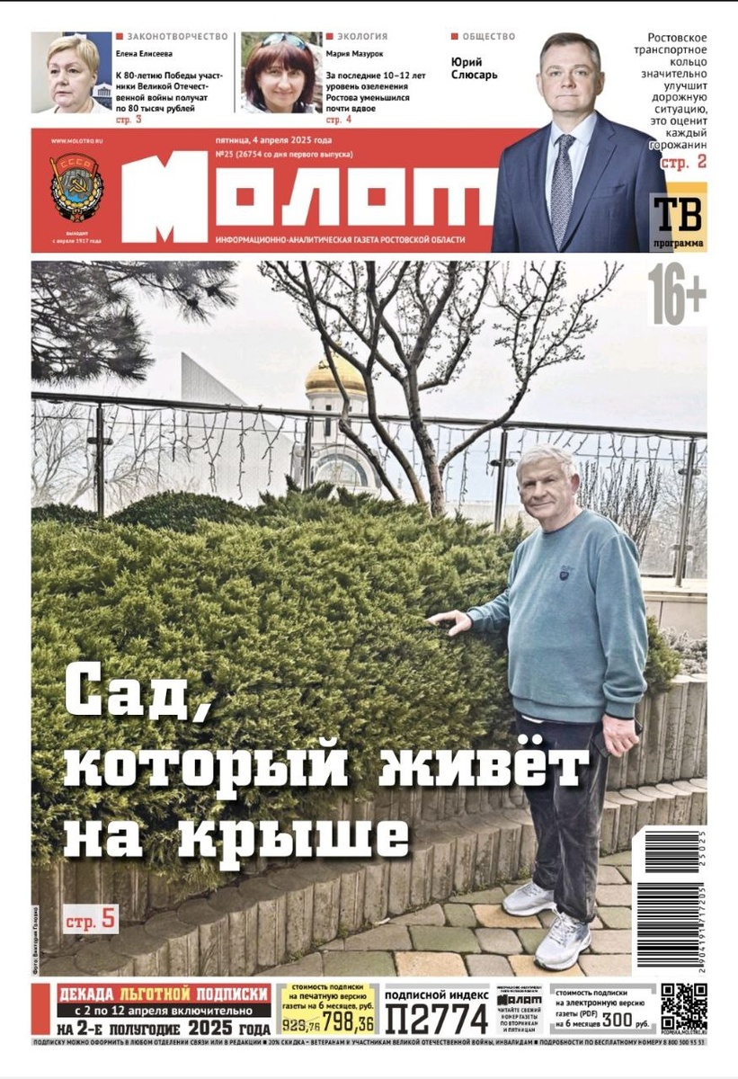 Читайте в свежем номере «Молота»: 🌳 Сад, который живет на крыше В Ростове принцип «зеленой крыши» — кровли, частично или полностью засаженной растениями, претворили в жизнь на нескольких зданиях. При каких условиях такие кровли могли бы перестать быть диковинкой на Дону, читайте в материале Виктории Головко. 🧮 Математика в бирюзовых оттенках Студенты придумали, как расширить пространство небольшой хуторской школы и сделать его не только красивым, но и функциональным. Как стало возможным сотрудничество молодых дизайнеров с образовательными учреждениями, выясняла Ирина Варламова. 🎶 Как по нотам Юная пианистка из Кагальницкого района Елизавета Козлова заняла первое место в IV Международном конкурсе «Я — артист». И эта победа далеко не первая. О талантливой девочке Надежде Айрумовой рассказала ее преподаватель Елена Погребняк. Также в номере: анонс культурных событий в городах и районах области, кроссворд, телепрограмма и новости спорта. 📰Читайте «Молот», у нас надежные источники!
