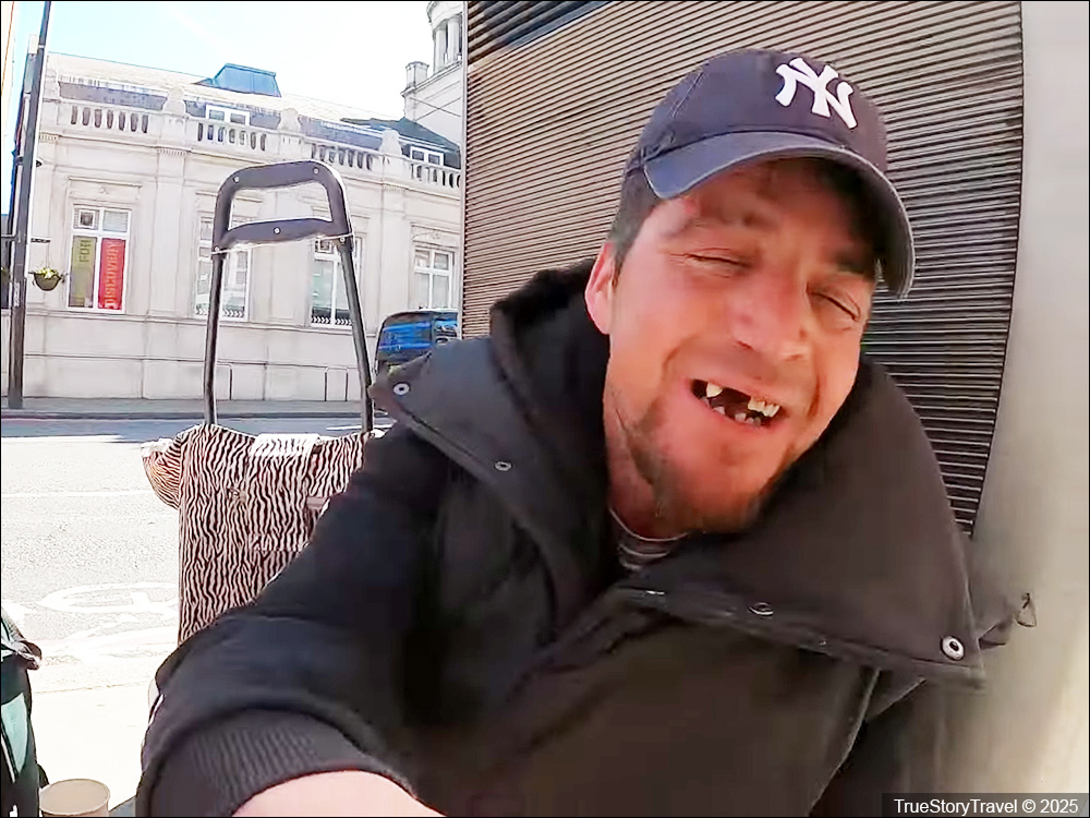 Всем привет! Бездомный сказал на русском: "Помоги едой или дай фунт". Оказалось, он уехал из России - и теперь живет на улице. Как он сломал себе жизнь - бездомный рассказ подробно.