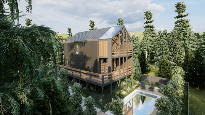 Дом площадью 128 квадратных метров спроектирован в современном стиле барнхаус. Эта архитектурная концепция сочетает в себе простоту форм, естественные материалы и максимальное использование природного света. Проект включает в себя одноэтажное пространство с мансардой, что позволяет рационально использовать каждый квадратный метр. Терраса - идеальное место для отдыха на свежем воздухе. Мы использовали лиственницу, которая не только красива, но и устойчива к воздействию влаги и солнечного света. Санузел - продуманный и комфортный, с современными отделочными материалами. Комната и тамбур - пространство, которое можно обустроить по своему усмотрению. Тут удобно разместить системы хранения для одежды, а также организовать место для отдыха. Балкон с панорамным остеклением, который открывает потрясающий вид на окружающую природу. Здесь приятно проводить утренние часы с чашкой кофе, наслаждаясь солнечными лучами. Две спальни, одна из которых имеет выход на балкон. Это решение добавляет уюта и
