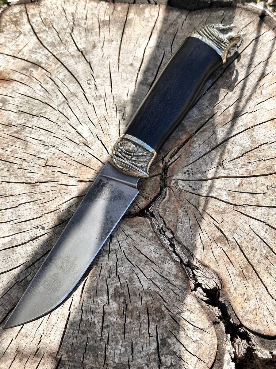 Р18 - отечественная сталь быстрорез, имеет высокую твёрдость 65-66 HRC, что обеспечивает очень долгое удержание режущих свойств ! В единственном экземпляре разделочный нож из быстрореза Р18 с рукоятью из чёрного граба и мельхиора. Характеристики ножа: Длина клинка 125 мм Ширина клинка 30 мм Толщина 3 мм Длина рукояти 125 мм. На клинке прямые спуски от обуха, бритвенная заточка режущей кромки. Ножны из натуральной кожи в комплекте. Цена ножа 11150 руб. Можем изготовить формованные ножны из кожи растительного дубления (+ 8000 руб.) Для заказа писать на @Nazarklinokbot или по тел +79101343831, WhatsApp
