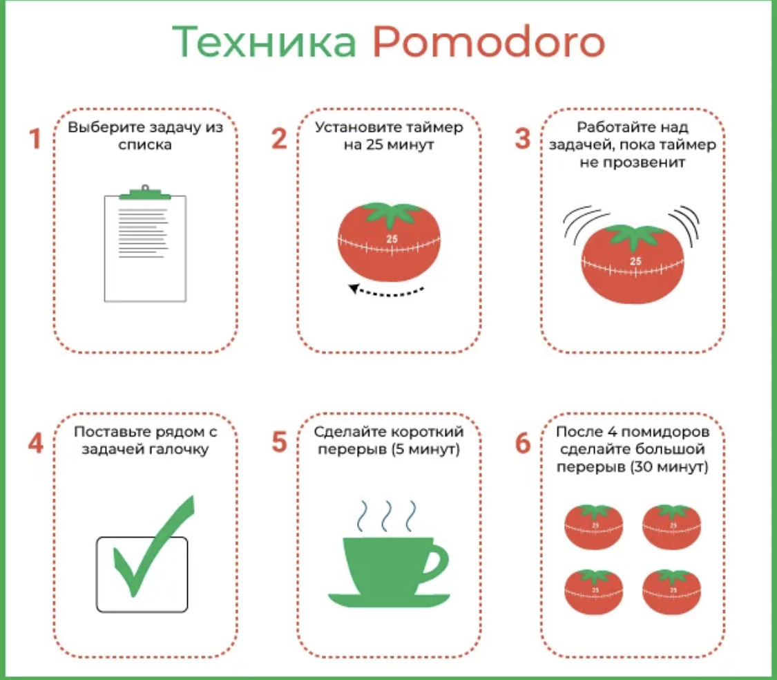 Привет! В этой статье я хочу поделиться с вами пятью проверенными стратегиями, которые помогут повысить вашу продуктивность и начать достигать поставленных целей. В современном мире, где информации столько, что она буквально может захлестнуть, важно уметь управлять своим временем и сосредотачиваться на том, что действительно важно. Давайте разберемся, как это можно сделать! Если ты часто отвлекаешься, это не редкость, особенно в условиях постоянных уведомлений и переполненных задач. Метод Pomodoro — это отличное решение, которое помогает работать с максимальной концентрацией и при этом не перегружать себя. Как это работает? Этот метод помогает поддерживать высокий уровень концентрации, избегать усталости и ощущать постоянный прогресс. Главное — не забывать, что перерывы так же важны, как и сам процесс работы. Это даёт тебе время восстановиться и вернуться к задачам с новыми силами. Если тебе нужно выполнить задачу, которая займет менее двух минут, сделай это сразу. Не откладывай на
