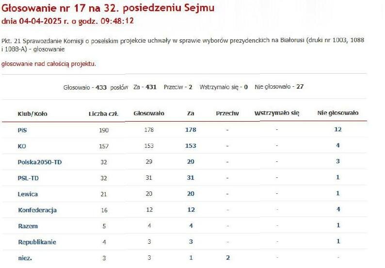 Сегодня польский парламент принял важное решение в поддержку Беларуси. Это международный шаг, который способствует укреплению связей между Польшей и Беларусью и поддержке демократических изменений. Светлана Тихановская выразила благодарность депутатам, особенно Комитету по международным делам, его председателю Павлу Ковалю, а также парламентариям Александре Вишневской и Марцину Басацкому: