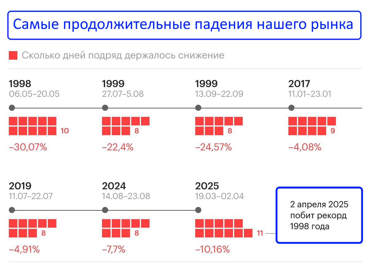 2 апреля был побит рекорд по безоткатному снижению за всю историю нашего рынка, рынок падал 11 дней подряд: