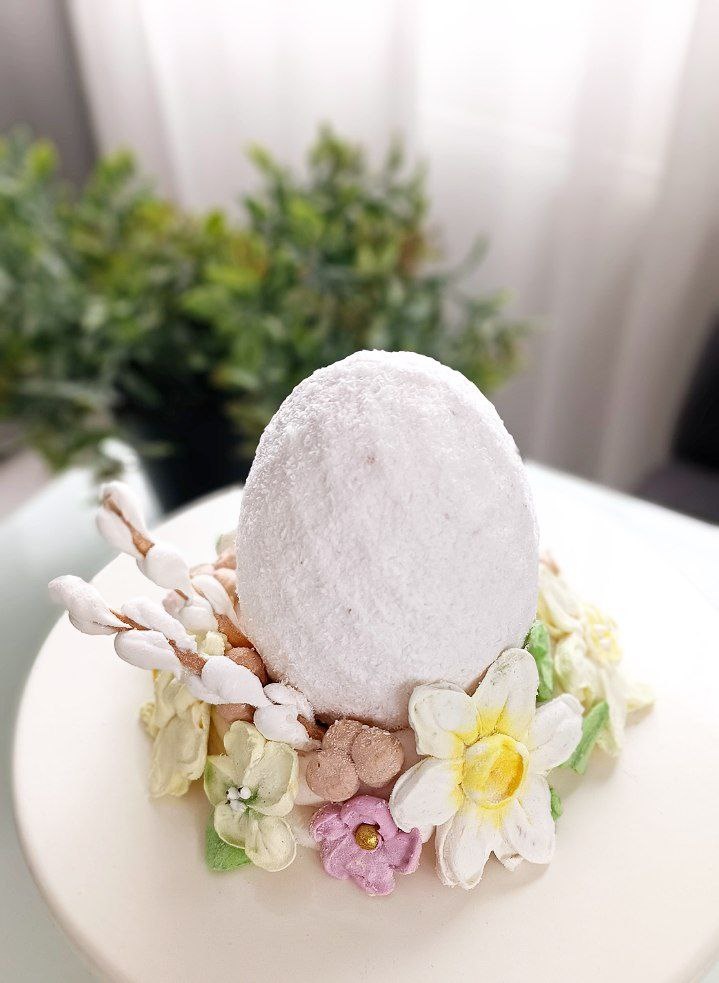 Пасхальная композиция из зефира. Яйцо в кокосовой стружке, внутри начинка- джем.
