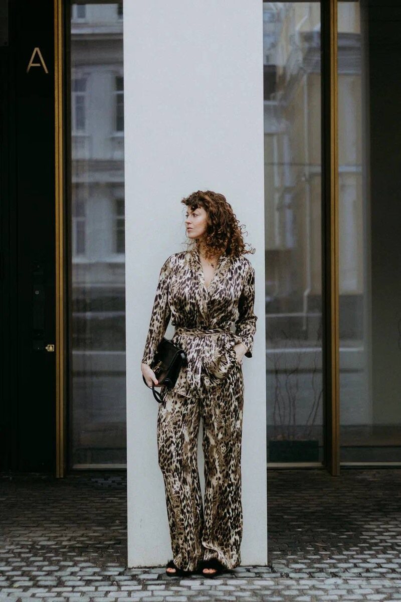 Уже в продаже: шелковый костюм с брюками прямого кроя и удлинённым легким жакетом под пояс. Сегодня получили красоту во всех размерах 🐆