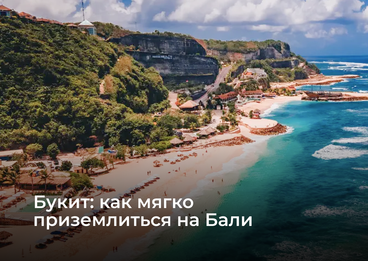 Полуостров Букит — точка входа на Бали, где всё начинается: скалы, океан, белый песок, ужины с видом на закат и первые уроки адаптации. Если вы только прилетели, устали после дороги и не знаете, с чего начать — Букит помогает переключиться. Мягко, без суеты и с комфортом.