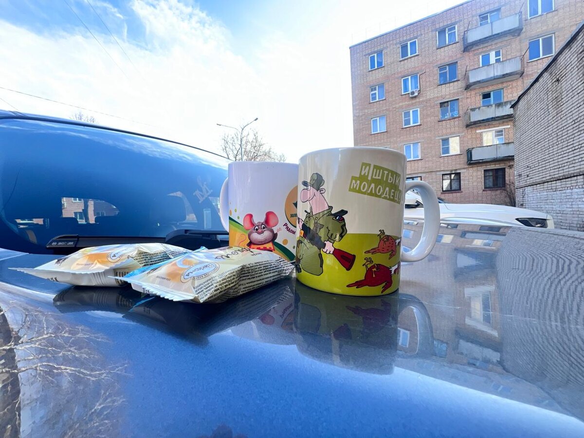 На месте этого фото могли бы быть кадры наших добровольцев, которые на днях провели акцию по раздаче вещей и помогли более, чем 20-ти семьям получить бесплатно одежду и обувь. А еще фото, где они консультируют посетителей, наполняют стойки вещами, принимают пакеты с одеждой, наводят порядок. Только за одну неделю количество вещей, прошедшее через руки наших волонтеров в пункте Добрые руки составило 1000 кг!!!! А еще руки наших добровольцев посадили в горшки более 50 росточков - так мы готовимся к предстоящему празднику Победы. Но наши волонтеры скромные от слова ОЧЕНЬ. Поэтому вы видите только 2 кружки с чаем, как символ дружной работы и теплоты их сердец. Фото сделано во время работы добровольцев прямо на улице.