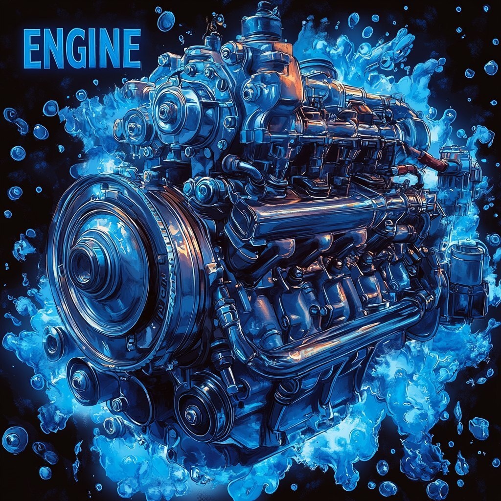 Создано на основе запроса: On the black background, in the middle is a pattern of an engine, the engine is mainly blue-gray, rich in detail, with a metallic texture. The word "ENGINE" is written in blue on the left side of the engine, with some blue splash decoration in the background, and the overall style is full of mechanical power and industrial wind. --- Автоперевод: На черном фоне, посередине находится шаблон двигателя, двигатель в основном синий серый, богатый в деталях, с металлической текстурой. Отлично выглядит? 🤔 https://dzen.ru/id/65c0c65c86e4f837c27b24d7 #ИИ #AI #нейросеть #midjourney #art