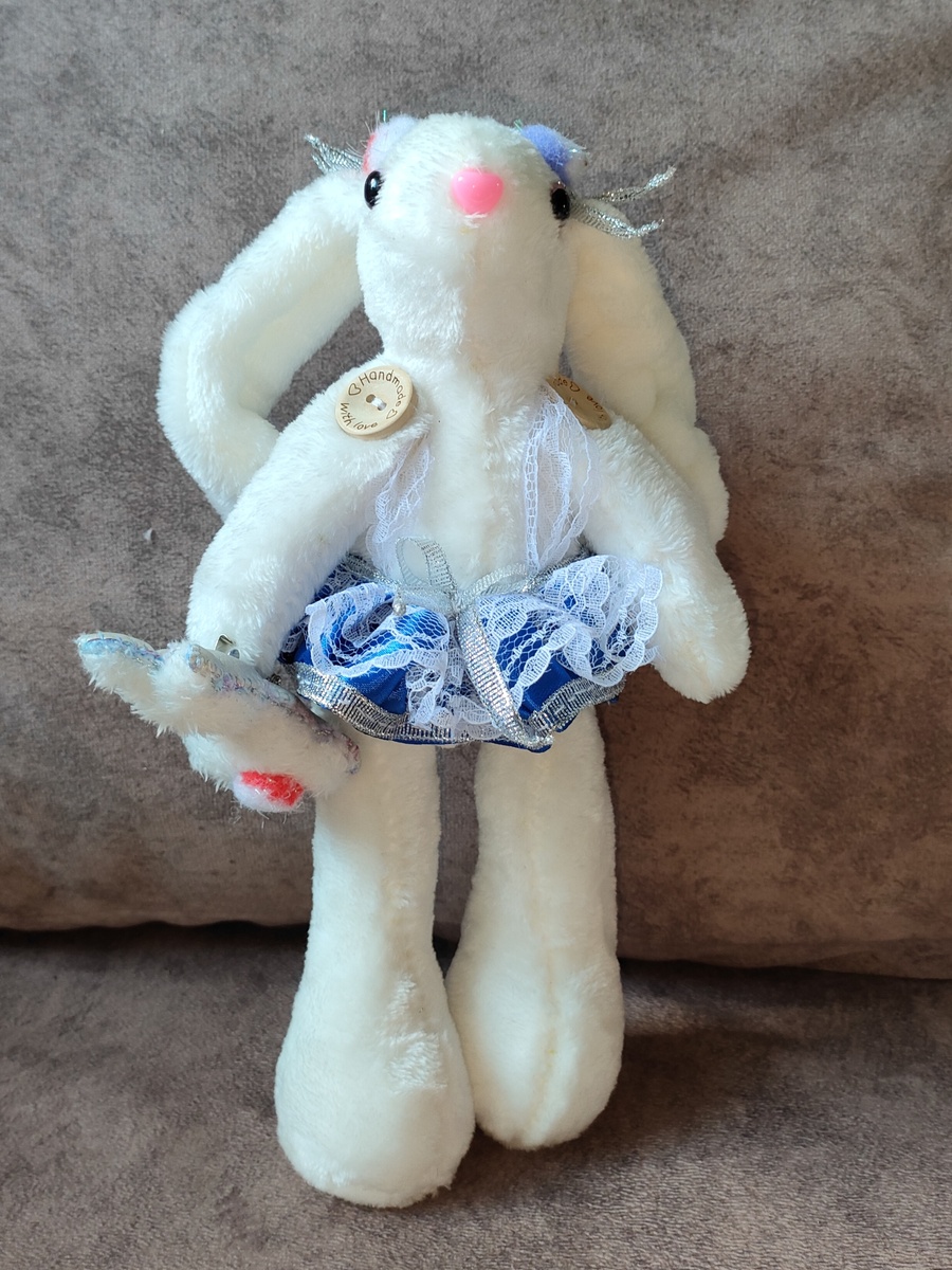Мимоходом. Зайка. Как обычно, лапки шевелятся, юбочка - снимается. В руке - зайка-брошка.
