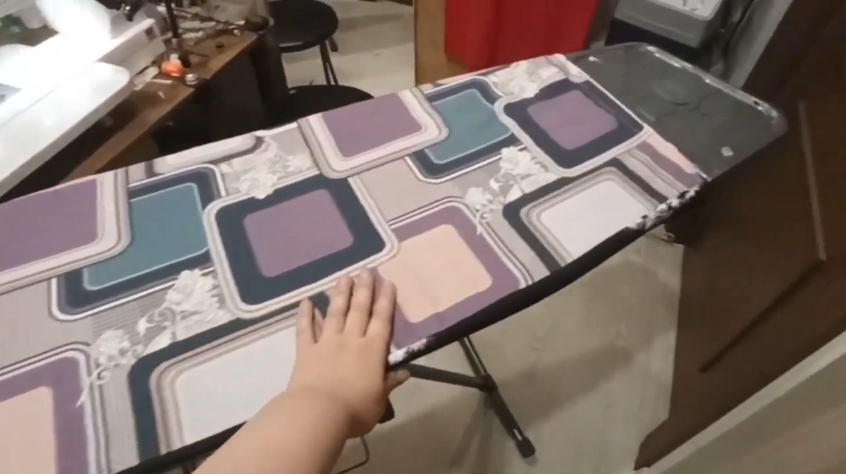 Настал момент истины — я надела чехол на гладильную доску. Он сел почти идеально: резинка плотно обхватила края, ткань легла ровно, без складок. Однако в узкой части (у носика) чехол слегка топорщился. Я сняла его, подогнула лишнюю ткань и сделала пару вытачек — небольших треугольных складок, которые убрали излишки. После этого чехол стал сидеть как влитой.