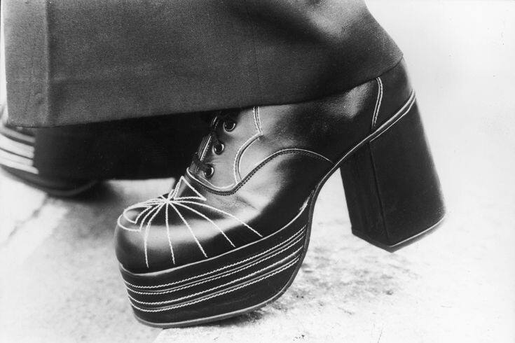 Если не врёт Яндекс, обувь на подошве "платформа" в их относительно современном видел придумал ("разработал" здесь, наверное, слишком сильное слово) некто Моше Кимель специально для Марлен Дитрих в тридцатых годах двадцатого века. Моше (став по дороге Моррисом) уехал из Германии от греха подальше в Лос Анджелес, Марлен Дитрих в основном тоже в Америке жила. Там и встретились. Про платформы практически забыли до 60-70 годов, когда они вошли в моду практически по всему миру. Чтобы снизить дефицит и удовлетворить потребности советских людей в так необходимых им платформах к решению вопроса подключили Ленинградскую экспериментальную судоверфь (ну а кого ещё?). И уже буквально в середине восьмидесятых годов ЛЭС выдала результат! "В настоящее время освоены в серийном производстве ледоруб и айсбайль альпинистские, изготавливается опытно-промышленные партии молотка ледового и кошек альпинистских универсальных, идет подготовка к выпуску молотка скального. Модернизации подверглись и другие виды