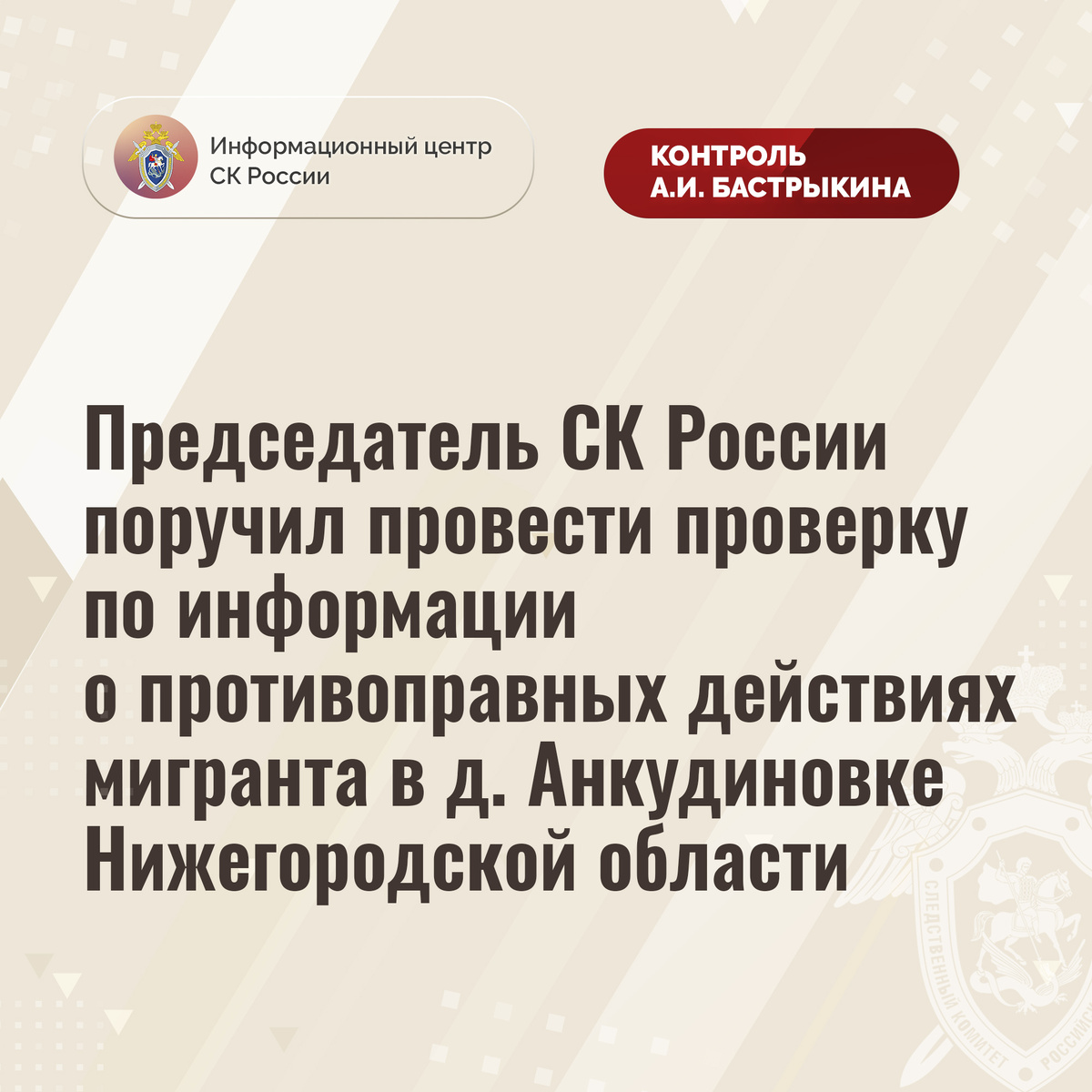 Председатель СК России поручил провести проверку по информации о противоправных действиях мигранта в д. Анкудиновке Нижегородской области