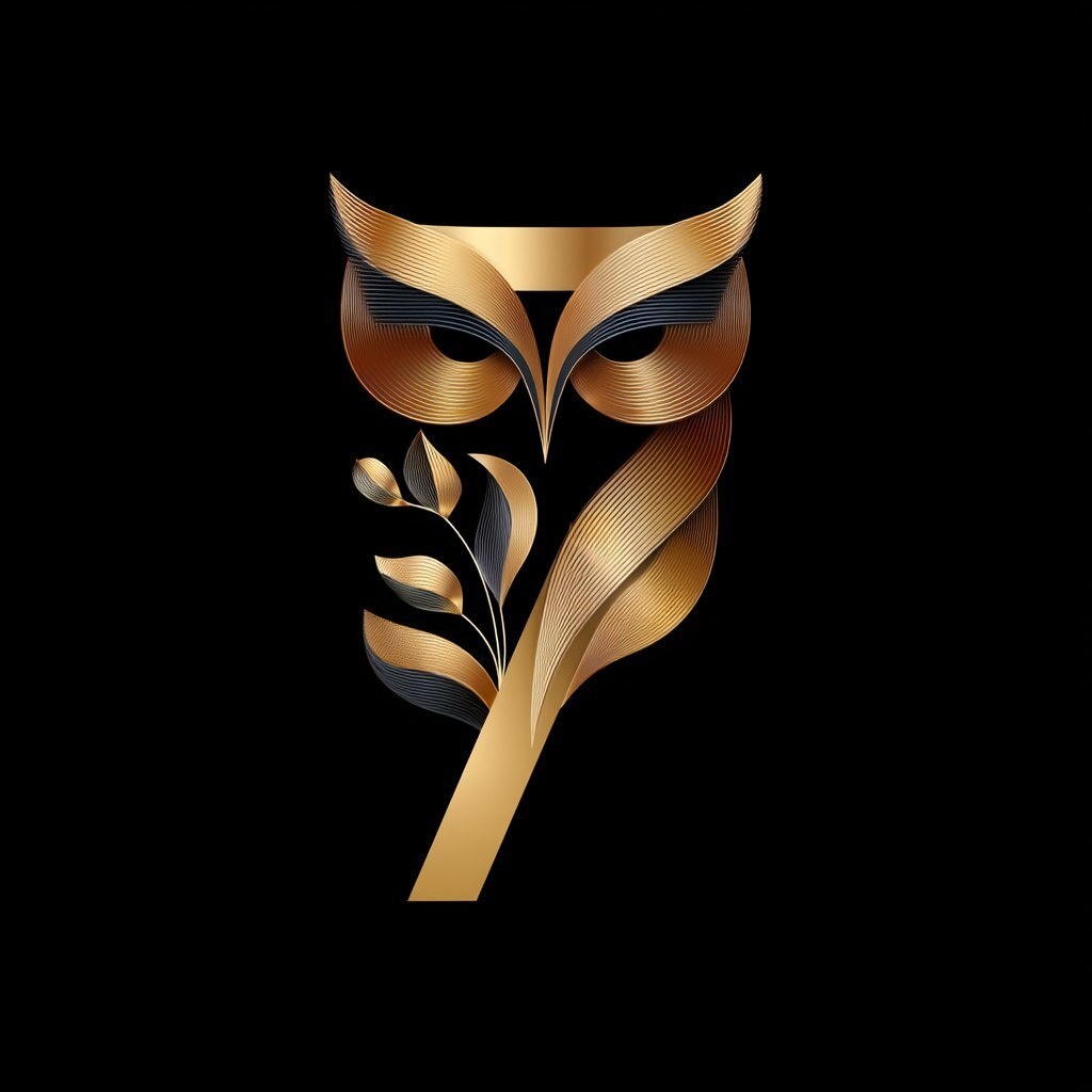 Создано на основе запроса: simple logo, gold gradient, vector , reimagined as the number "7", with an outline of a fiber optic floral owls