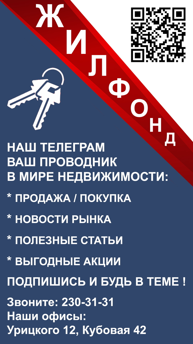 Жилфонд на Урицкого 12 и Кубовая 42 — ваш проводник в мире недвижимости! Мы предлагаем широкий выбор квартир, домов и коммерческой недвижимости от проверенных застройщиков и собственников. С нами вы сможете: * Найти идеальный вариант жилья, соответствующий вашим требованиям и бюджету. #КвартирыЖилфондУрицкого #НовостройкиЖилфондУрицкого #ЗагороднаяНедвижЖилфондУрицкого * Узнать о последних новостях рынка недвижимости и изменениях в законодательстве.#НовостиЖилфондУрицкого * Получить консультации от опытных специалистов по вопросам покупки, продажи, аренды и инвестиций в недвижимость. #КонсультацииЖилфондУрицкого * Изучить полезные статьи и обзоры, которые помогут вам принять правильное решение. #ПолезныеСтатьиЖилфондУрицкого * Познакомиться с нашим коллективом или даже стать его частью. #ТренингиКорпоративыЖилфондУрицкого Подписывайтесь на наши каналы, чтобы всегда быть в курсе актуальных предложений и первыми узнавать о выгодных акциях и скидках! #АкцииСкидкиЖилфондУрицкого ЗВОНИТЕ: 2
