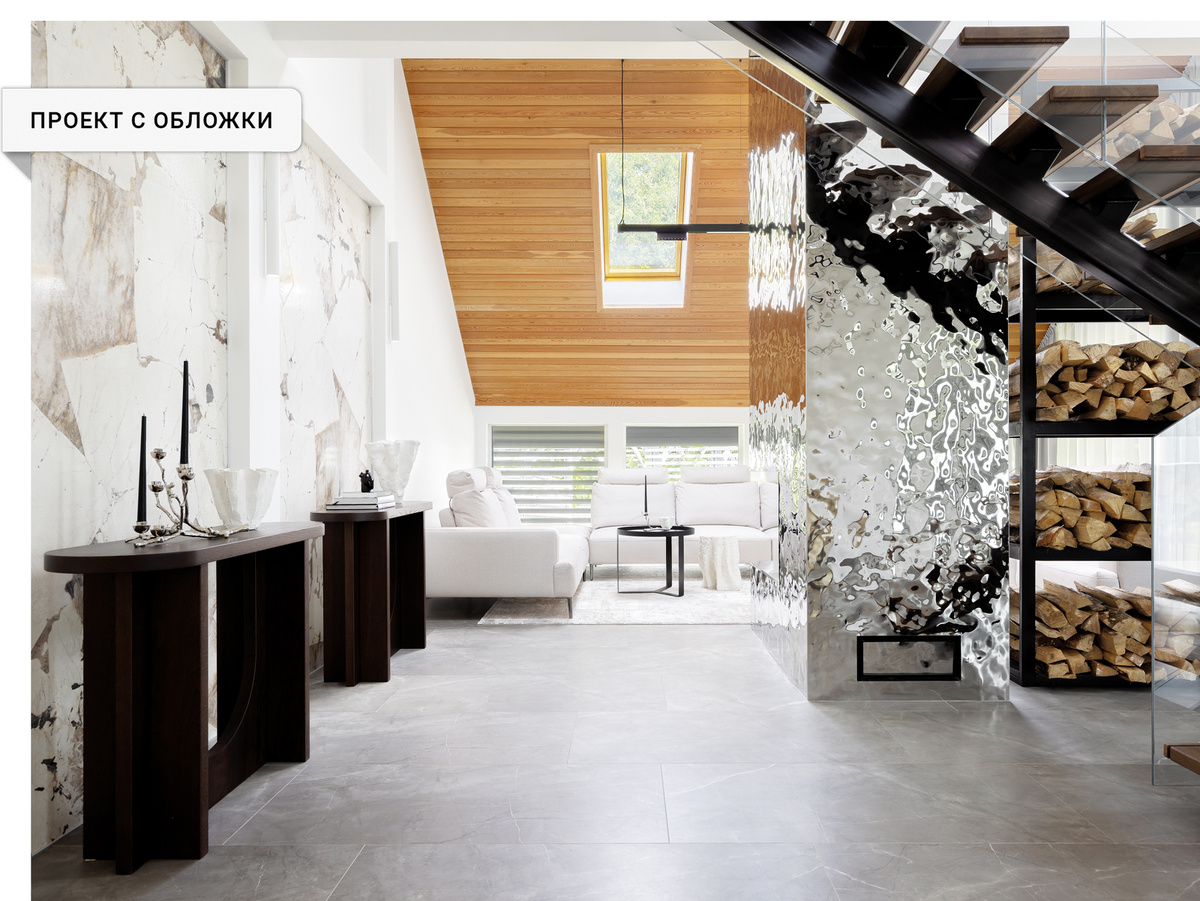 Дизайнер Светлана Игнатова создала функциональное пространство, наполненное светом и воздухом. Минималистичный стиль интерьера стал фоном для интересных текстур и современных решений, таких как отсутствие ручек на мебели и использование теневых профилей. В основе концепции проекта лежало создание эргономичного и современного интерьера в минималистичном стиле. Важно было не перегружать его деталями и продумать гармоничное планировочное решение. В первую очередь мы объединили прихожую с каминной гостиной, создав единое пространство, а также объединили кухню и обеденную зону, впустив в кухню большой объем света. Кроме того, мы выделили масштабное пространство для хозяйственного помещения. При планировании спальни часть помещения была отдана в пользу мастер-санузла. Гардеробные заказчика и заказчицы расположились в непосредственной близости к спальной комнате. Придерживаясь выработанной концепции, мы использовали современные решения: облицевали камин панелями из нержавейки, максимально обл