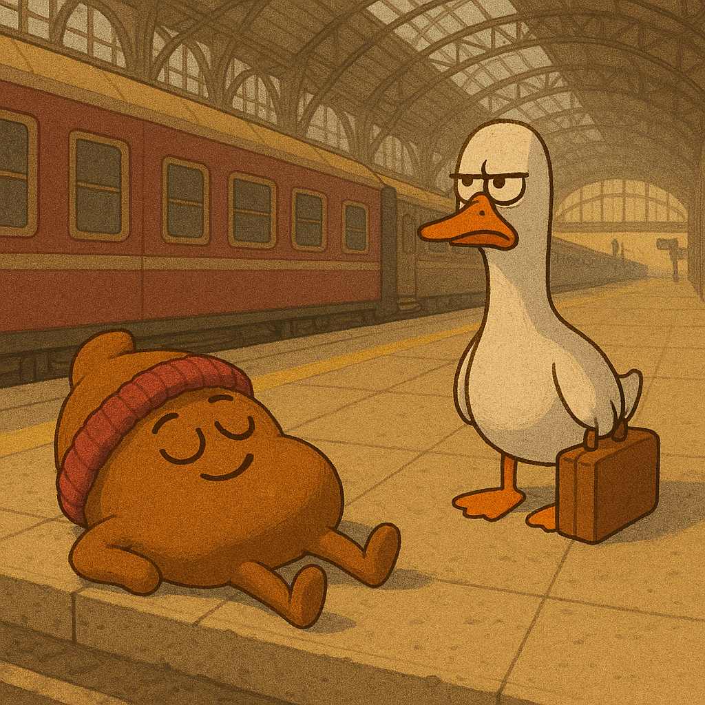 «Мы выбираем не случайно друг друга... Мы встречаем только тех, кто уже существует в нашем подсознании» Зигмунд Фрейд Это случилось весной на вокзале. Говненок лежал и грелся на грязном бордюре у дороги, лучи солнышка прожигали мягкое туловище, и казалось, что кто-то окончательно расплавится и исчезнет с лица земли. Гусенок нервно выкатился с чемоданчиком в крыле и презрительно взглянул на теплый прекрасный город: «Тьфу! Ну и дыра. Точно провинция!» А потом случайно чуть не наступил лапой в… (сами понимаете кого). «Эй, больно ваще-то! Тут загорают! Да, в шапке, и? Нет, не жарко!» -пискнула кучка похожая на подтаявшую пироженку. А Гусь впервые за 43 года расхохотался и молвил: «Хватит уж тебе! И так весь черный!» Коричневому созданию вдруг стало обидно - сие дискриминация по цветовому признаку. Расист какой-то. Конечно, сам - то, вон, белый, красивый, словно с обложки журнала, злой только. Вот и познакомились. Говненок тогда сразу смекнул - енто чудоковатый мизантроп и невротичный летаю